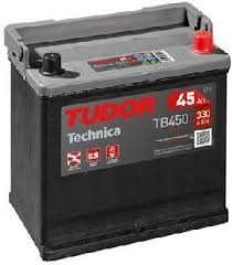 Nombre Tudor TB450 | 45ah 330A Detalles Tudor Technica: bateria de alto rendimiento mas de un 15% de arranque a comparacion con baterias estandar. Libre de mantenimiento y ojo magico para saber el estado de carga. 2 años de garantia. Descripción Bateria de arranque, sin mantenimiento, calidad del 1º fabricante mundial de baterias, EXIDE Ventajas: 15% de potencia de arranque en comparación con baterías estándar. Desgasificación centralizada y filtro antillamas. Totalmente libre de mantenimiento. Código E02033C13-ATU3I Fabricante Exide Voltaje (V) 12 V Capacidad (Ah) 45Ah Salida (A) 330A Largo (mm) 220 Ancho (mm) 135 Alto (mm) 225 Posicion bornes + derecha Tecnología Plomo abierto, sin mantenimiento Peso (Kg) 12.0000 Garantía (años) 2 años garantia.