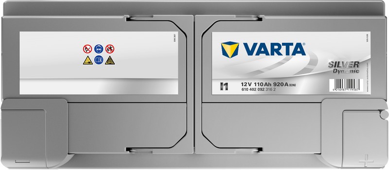 Nombre Varta I1 Silve dynamic | 110ah 920A Detalles Baterías de coche Varta Silver Dynamic sin mantenimiento total. Suministro de energía fiable, incluso con un número de consumidores de potencia superior a la media, extraordinaria fuerza de arranque en frío también en condiciones extremas, al igual que máximas reservas de capacidad. Descripción Producto estrella de Varta para vehículos que plantean las máximas exigencias a la batería. La serie Varta Silver Dynamic ofrece la máxima potencia con toda fiabilidad, incluso con numerosos dispositivos electrónicos. Destaca por su extraordinaria potencia de arranque en frío así como por sus enormes reservas de capacidad. Ventajas: Para automóviles con necesidades de potencia especialmente altas Ideal para vehículos con numerosos dispositivos eléctricos Producto de gama alta en el mercado Optima para motores diesel y gasolina Vida útil más larga gracias a la tecnología PowerFrame Código 610402092 Fabricante Varta Voltaje (V) 12V Capacidad (Ah) 110ah Salida (A) 920A Largo (mm) 393 Ancho (mm) 175 Alto (mm) 190 Posicion bornes + derecha Tecnología Hermetica sin mantenimieto, bateria de gama alta Peso (Kg) 27.0000 Garantía (años) 2 años de garantia
