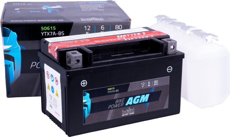 Nombre Intact YTX7A-BS AGM Detalles Bateria marca Alemana Intact para motos. Descripción Bateria Intact YTX7A-BS Tecnologia AGM sin mantenimiento. Código 50615 Fabricante No Voltaje (V) 12V Capacidad (Ah) 6Ah Salida (A) 80A Largo (mm) 150 Ancho (mm) 87 Alto (mm) 93 Posicion bornes + izquierda Tecnología AGM Peso (Kg) 3.0000 Garantía (años) 1 año de garantia